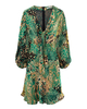 Made from 100% recycled polyester, this dress offers a sustainable yet luxurious feel, featuring a playful print that adds a modern twist to its vintage-inspired design.